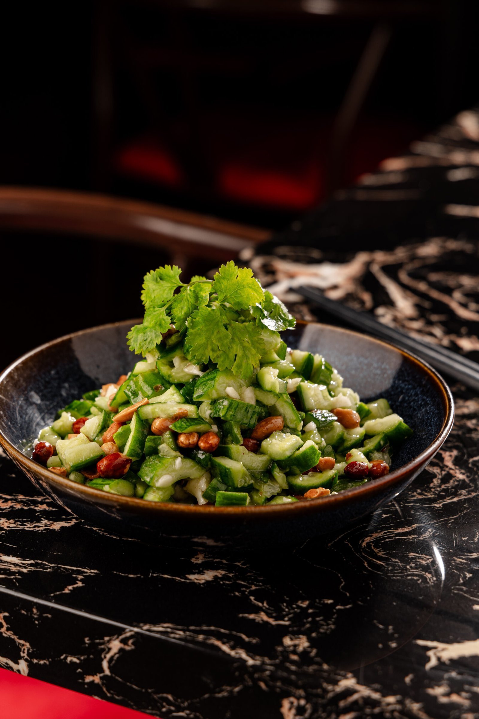 Ensalada de pipono con ajo picado, maní y cilantro.