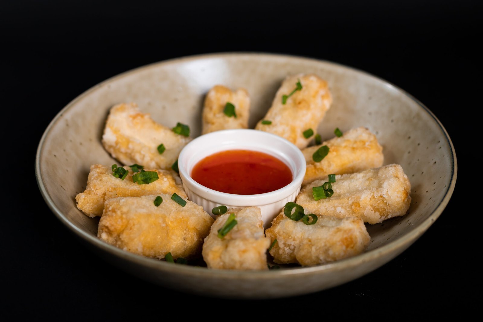 Tofu frito acompañado de salsa agridulce estilo thai.