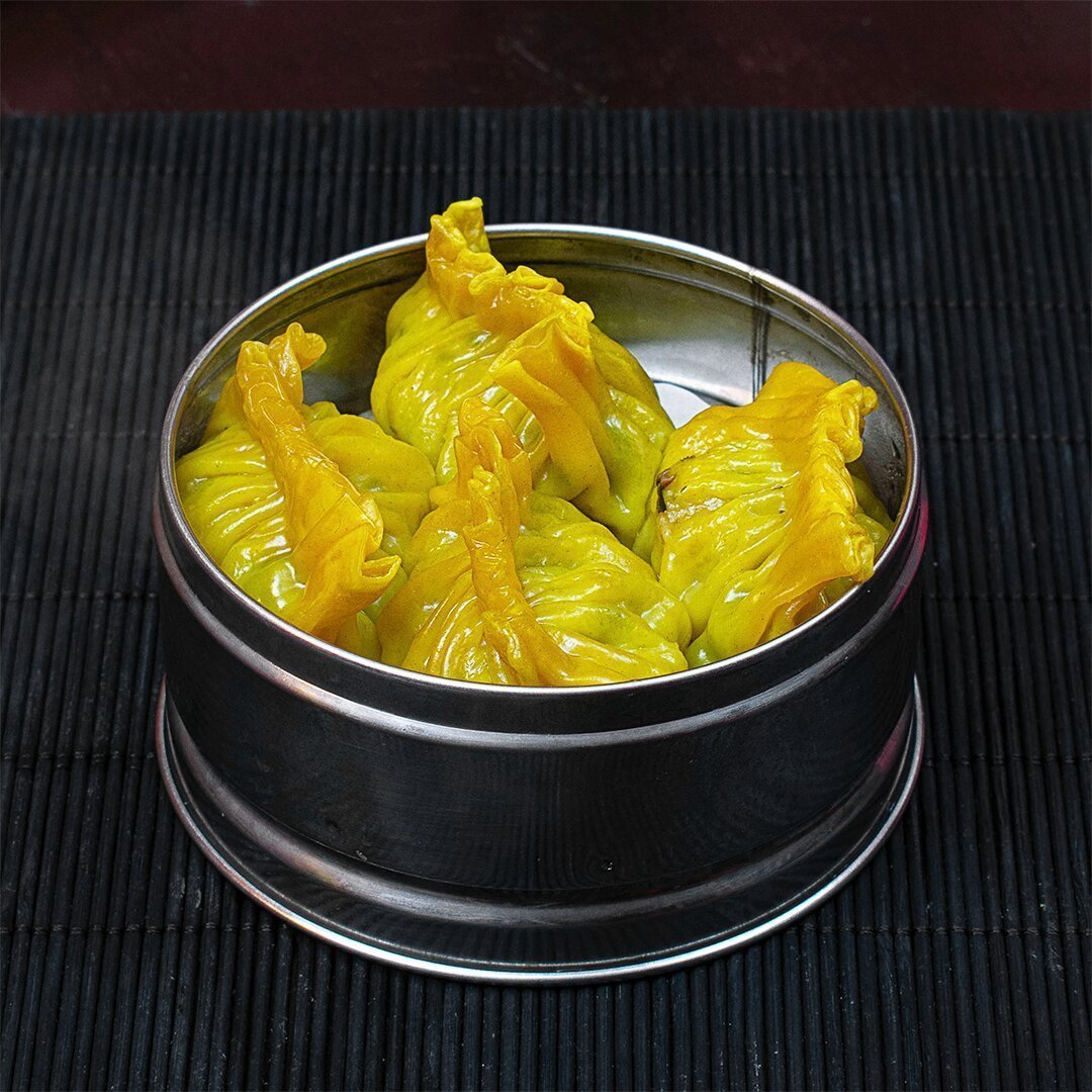 Masa base de huevo rellena de camaron, puerco y vegetales